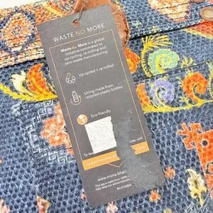 NWT Mona B Weekender Tote Blue Tan Upcycled Canvas Boho Carpet Print