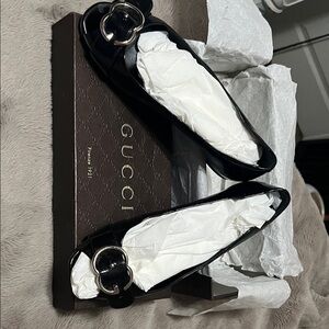 Elegant black flats with a stylish silver buckle. Perfect for any occasion. I did have the bottom of the shoe changed since it had zero traction. It’s a rubber sole which is better for wear.