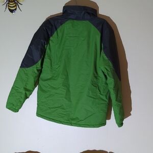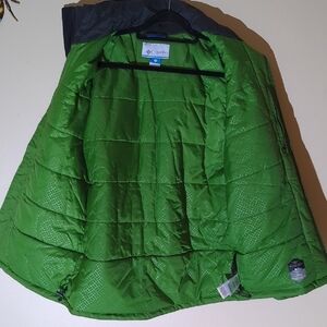 Dynamic Columbia jacket in vibrant green with charcoal accents. Ideal for outdoor activities.