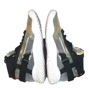 It's got a cool design, with a see-through cover over the classic Flyknit Air Jordan 1. The midsole uses Nike React tech for comfy cushioning, so your feet will feel good all day. You can adjust the heel straps for a perfect fit, and it has cool Flight Utility graphics on the tongue and heel.