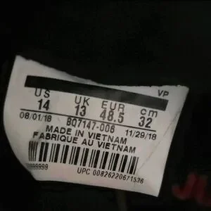 This one's a size 14 (US men's), which is a 13 in the UK and a 48.5 in Europe. The foot length is about 12 inches.