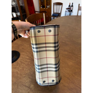 Burberry Beige Brown Plaid Coated Canvas & Leather Satchel