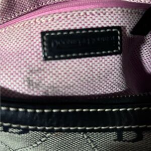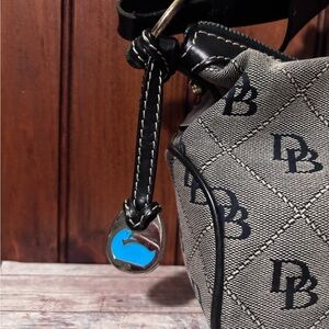 Chic gray bag with iconic monogram. Black strap and accents. Perfect for everyday use.