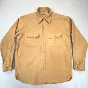 Vtg LL Bean Chamois Cloth Shirt Mens Size 16 Large Gold Barley USA Made ~ Read