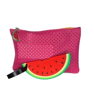 All products and new and packaged, ready to ship with super cute perforated travel back and matching watermelon 🍉 bag charm/luggage tag.