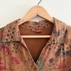 Vintage Earthy Floral Button-Up Shirt