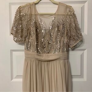 Adrianna Papell Beige Maxi Long Dress Mother of Bride Size 10