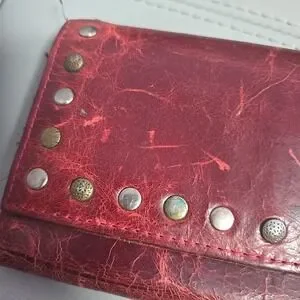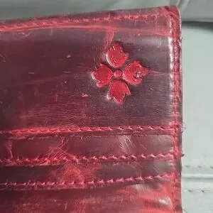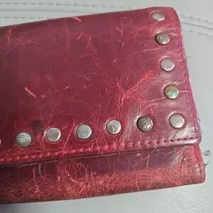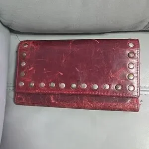Patricia Nash Varesse Distressed Leather Studded Bifold Wallet Berry Red Tooled