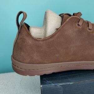 Men’s Teva Canyon Life Leather sneakers in Brown/Bison tone, men's size size 8.5 (US), UK 7.5, EU 41.5. Brand new and ships in the original box. Teva men's sneakers are crafted from premium leather upper with soft suede finish, breathable textile lining, cushioned EVA footbed for lightweight all-day comfort, durable rubber outsole with traction, low-profile casual silhouette, lace-up closure, moc-toe stitching detail, and heel pull tab, and lightweight boat shoe design Made in Vietnam. Ideal for everyday wear, travel, office, streetwear, casual work environments, casual wear, and all seasons. Minimalist preppy aesthetic with versatile neutral brown color. Smoke-free and pet-free home. Any defects IF any are shown in photos. Some spots are scratched. See photos. Only noticeable upon inspection.