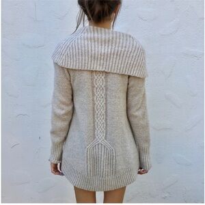 Anthropologie Angel Of The North Cowl Neck Cable Knit Cream Wool Sweater