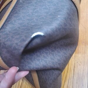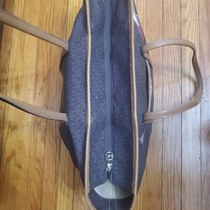 Chic Michael Kors tote with nautical graphics. Navy and tan design. Ideal for stylish outings.gas some wear at corners and inside has marks.missing the crossbody strap.
