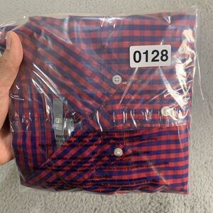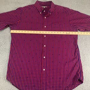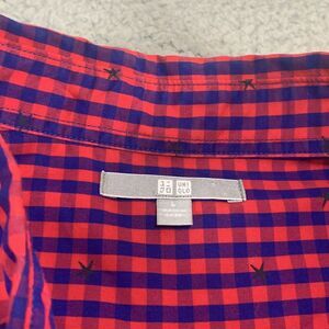 Uniqlo Shirt Mens Large Button Up Pink Blue Gengham Plaid Stars Modern Casual