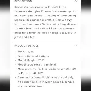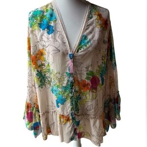 Flowy bell sleeves and deep v plunge neckline. Current season fast sell out. Quintessential Bohemian vibes delivered as expected from the brand behind boho: Johnny Was.