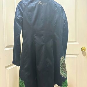 NEW ! DESIGUAL Vintage y2k Printed Navy Satin Coat & Trench Coat