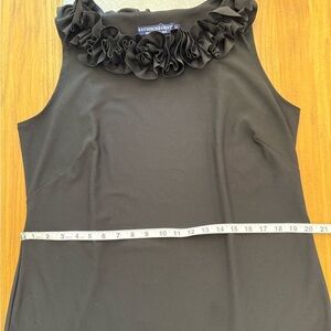 Katherine Way Black Rose Ruffled Neck Sleeveless Stretch Performance LBD Large