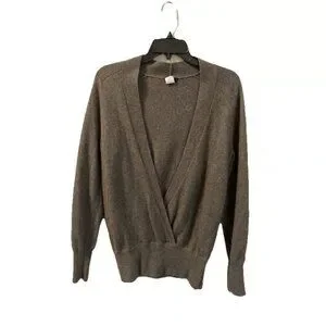 J.Crew Gray Wool Cashmere V-Neck Wrap Crossover Pullover Sweater Sz Large Cozy