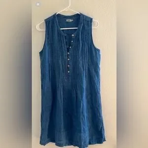 Faherty women’s linen Isha Basketweave Sleeveless Indigo Button-Front Dress Sz M