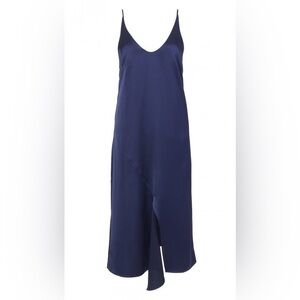 Tibi / Celestia Navy Blue Satin Slip Midi drape Dress 4