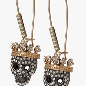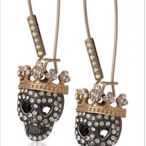 🖤 Betsey Johnson sparkling signature skull & crown crystal embellished earrings. Beautiful detail & dazzling sparkly. Long hook closure with crystals. Love these unique dazzlers 🖤