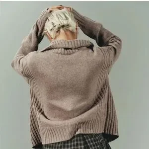 Lapel collar cardigan with long sleeves. Front welt pockets. Ribbed trim. Front button closure.
