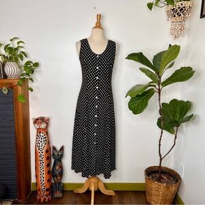 Vintage black and White Polka Dot button front midi Dress