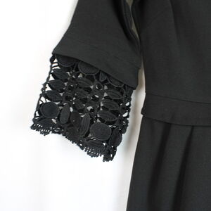 Occasion dress with 3/4 sleeves ending with black lace insert. The dress is provided with pleats at the waist and closes with a hidden zipper at the back.