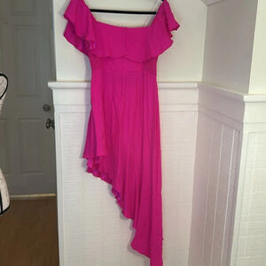 Amanda Uprichard REVOLVE Camellia Silk Asymmetric Dress Hot Pink size Large