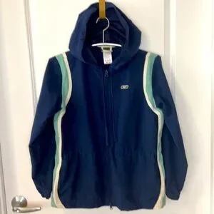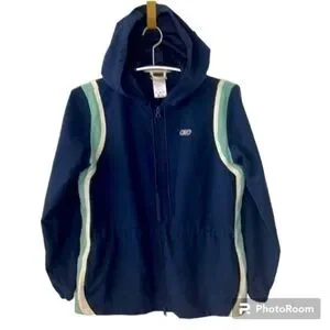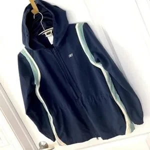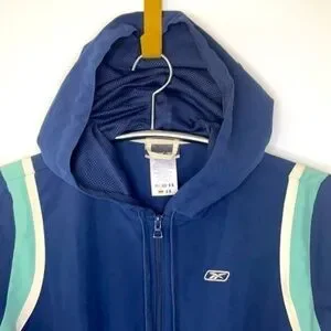Women’s Vintage Dark Blue Reebox Full Zip Mesh Hooded Sweatshirt Size Small