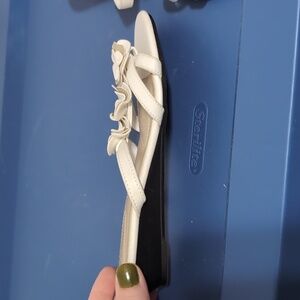 dexflex White Tan Flower Slide Wedge Sandal Size 5