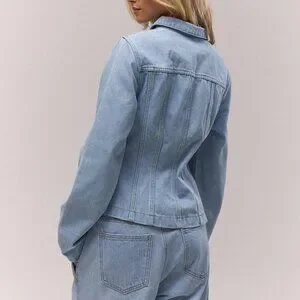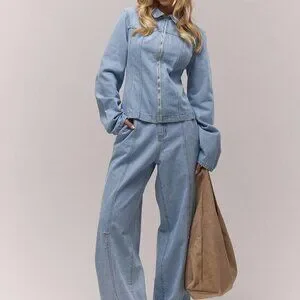Baby Blue Women's Washed Bleached Denim Panelled Zip Down Collared Jacket Co-Ord