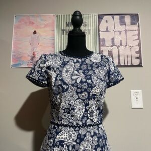 VTG Brooks Brothers Navy and White Paisley Patterned Mini Dress