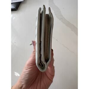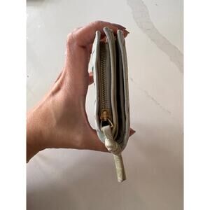 A timeless Bottega Veneta compact wallet crafted in the house’s signature Intrecciato woven leather. This softly structured piece features a snap tab closure, multiple card slots, and a zip coin compartment for everyday function in a refined silhouette.