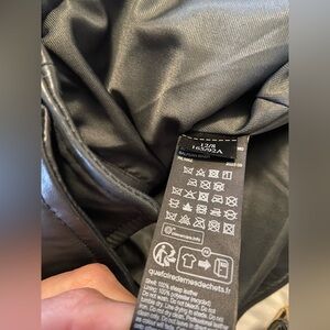 A gorgeous classic leather jacket from Allsaints. A black sheepskin leather with gold hardware and buttery soft. It has a belt at the bottom for the perfect fit!