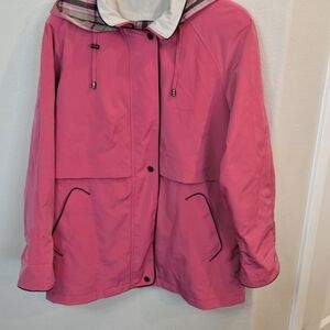 Vintage Liz Claiborne Pink Hooded Coat Jacket Plaid Lining Womens Large NEW