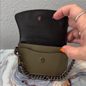 Coach Cream and Green Cardcase With Chain Strap