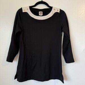 Anne Klein 3/4 Sleeve Knit Top Black & Ivory