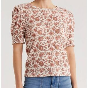 Lucky Brand Pointelle Floral Smocked Puff Sleeve Top Women’s M Boho Shirt Cottagecore Retro Classic