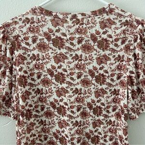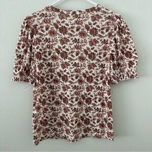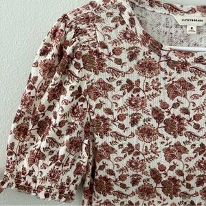 Lucky Brand Pointelle Floral Puff Sleeve Top Women’s M Boho Shirt Cottagecore