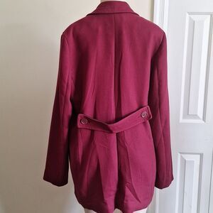 NWT, New With Tags, Crown & Ivy, Cranberry Red, Car Coat, Size XL, Lightweight, Spring Outerwear, Transitional Jacket, Longline Blazer, Herringbone Texture, Dark Berry, Dark Red, Single Button, Preppy, Business Casual, Dark Academia, Quiet Luxury, Old Money Aesthetic, Workwear, Office Chic, Classic Style, Belk Brand, Layering Piece, Sophisticated, Polished, Tailored, Textured, Vibrant Red, Pop of Color, Spring Layer, Minimalist, Capsule Wardrobe, Travel Jacket, Lined Coat, Professional.