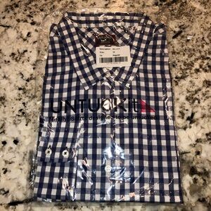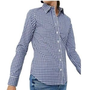 New Untuckit Women’s Belleza Blue Gingham Button Down Shirt Blouse Top sz 10