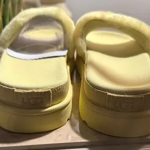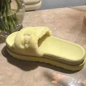 Ugg Yellow Fuzzy Fur Slide Sandals