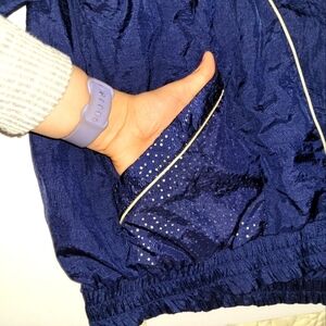 Vintage Cabin Creek Navy Blue and Gold Mock Neck Full Zip windbreaker jacket