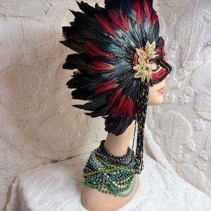 Preserved in excellent condition.Details:Red/Black/Gold Beaded Feather Mask