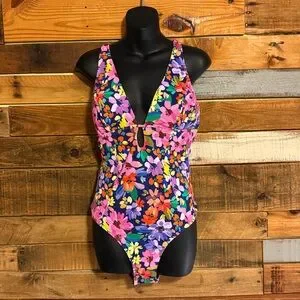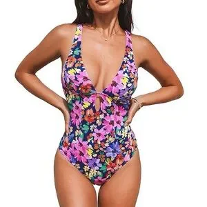 NWT Cupshe Ditsy & Petals Back O-Ring One-Piece Swimsuit.