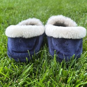 Velvet materials reminiscent of the shimmering ocean surface at sunrise—the Kuʻuna Lānui has a sophisticated style made for soaking it in. Lined with cozy shearling, these slippers are perfect for those quiet moments before hitting the streets or surf.