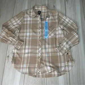 Gap Women's Soft Cotton Relaxed Fit Button Up Flannel Shirt Size Large-New