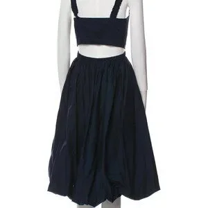 Romantic and effortless from Ulla Johnson – this navy midi embodies that bohemian-luxe aesthetic the brand is known for. The square neckline is framed by delicate ruffle straps that add just the right amount of detail without feeling precious. Features an elastic gathered waist that's both flattering and comfortable, full gathered skirt with beautiful movement, side seam pockets, and concealed side zip closure. The silhouette is quintessential UJ – feminine and flowing with impeccable construction. The deep navy reads sophisticated and versatile, working equally well for daytime events or dressed up for evening. Style with sandals and a woven bag or heels and delicate jewelry.