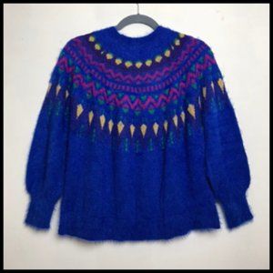 NEW! Soft Fluffy Royal Blue Fair Isle Sweater XL