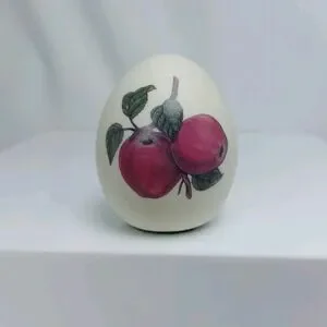Vintage Ceramic Bisque Egg Paperweight Handpainted Collectible Apples