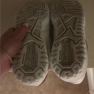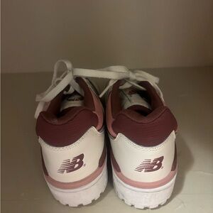 New Balance 550 sneakers in white with burgundy and dusty pink accents. Women’s size 7.5.